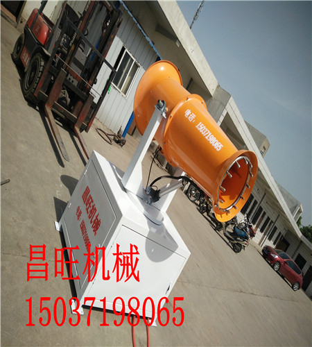 除塵噴霧霧炮機功率小、能耗低 在對噴嘴多年的研究基礎上對噴霧炮進行了反復的試驗研究,采用了風機變頻啟動,PLC控制,液壓轉動。最終在同等功率下噴霧炮相比同行業其他噴霧設備噴的更遠、耗能更低,性能更穩定。